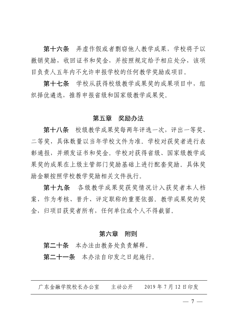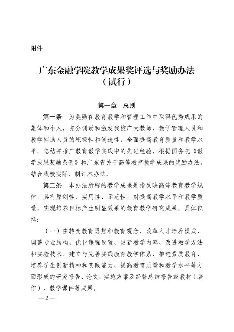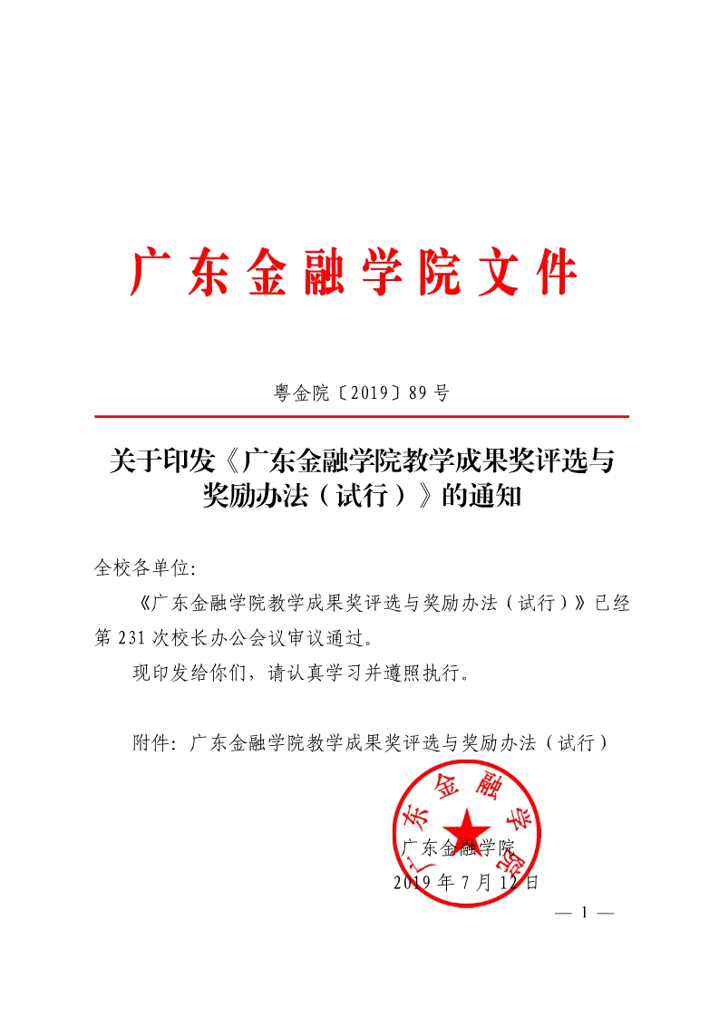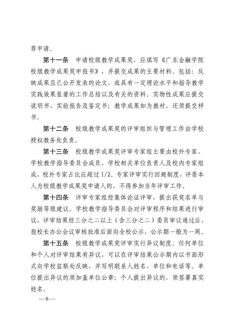 广东金融学院教学成果奖评选与奖励办法(试行)