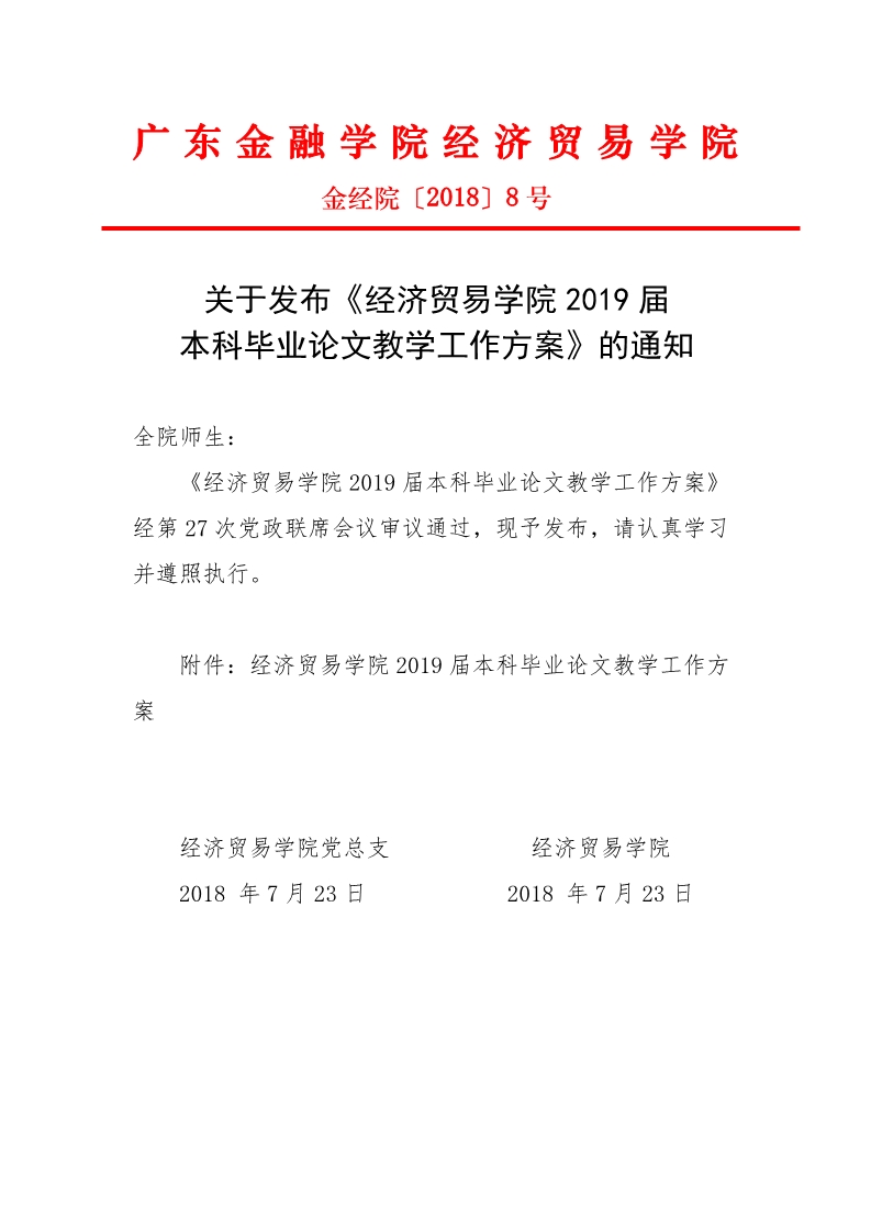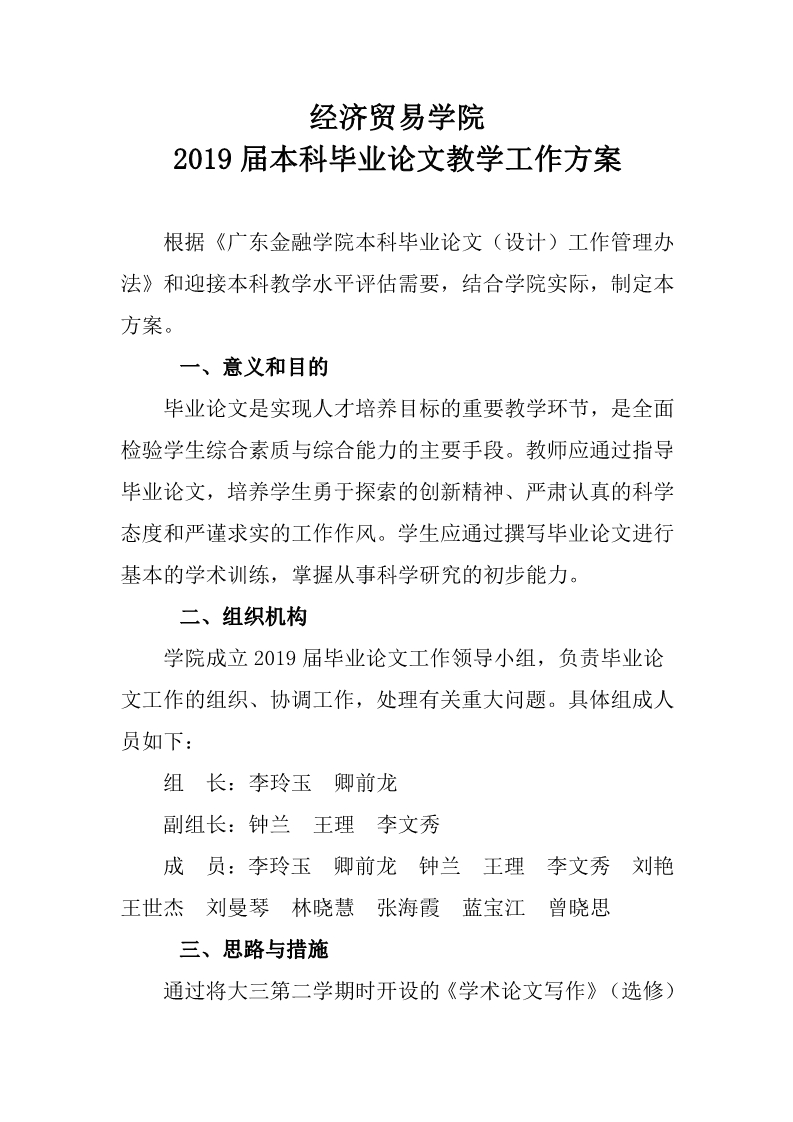 关于发布2019届毕业论文教学工作方案的通知