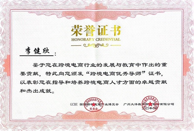 图5:吴雪亮、李健欣老师获“跨境电商优秀导师”证书