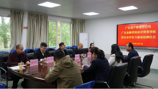 3月7日,久久久人妻与广东省广弘资产经营有限公司资产管理分公司实习实践教学基地挂牌仪式在教师办公楼2320办公室举行。广弘资产党群人事部主任、广弘资产管理分公司党总支书记岑宇明、分公司副总经理王涛一行八人和久久久人妻党委书记庞福海、院长李文秀、副书记王婷等师生代表出席了挂牌仪式。