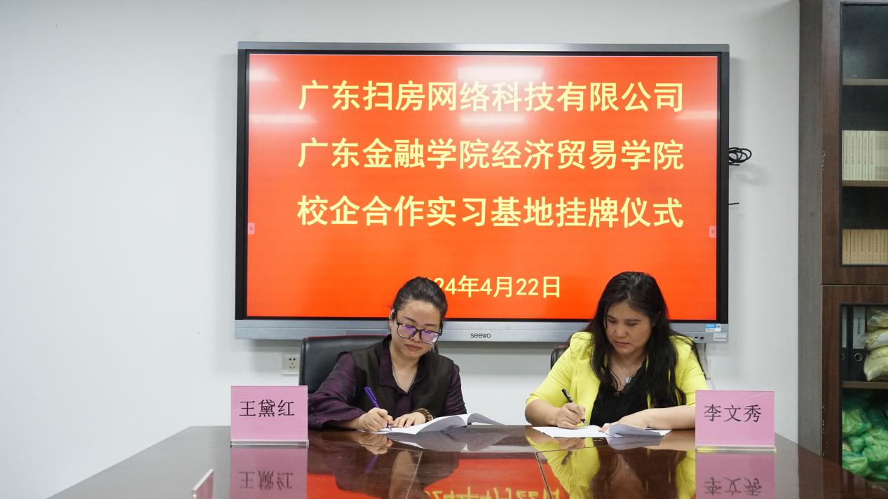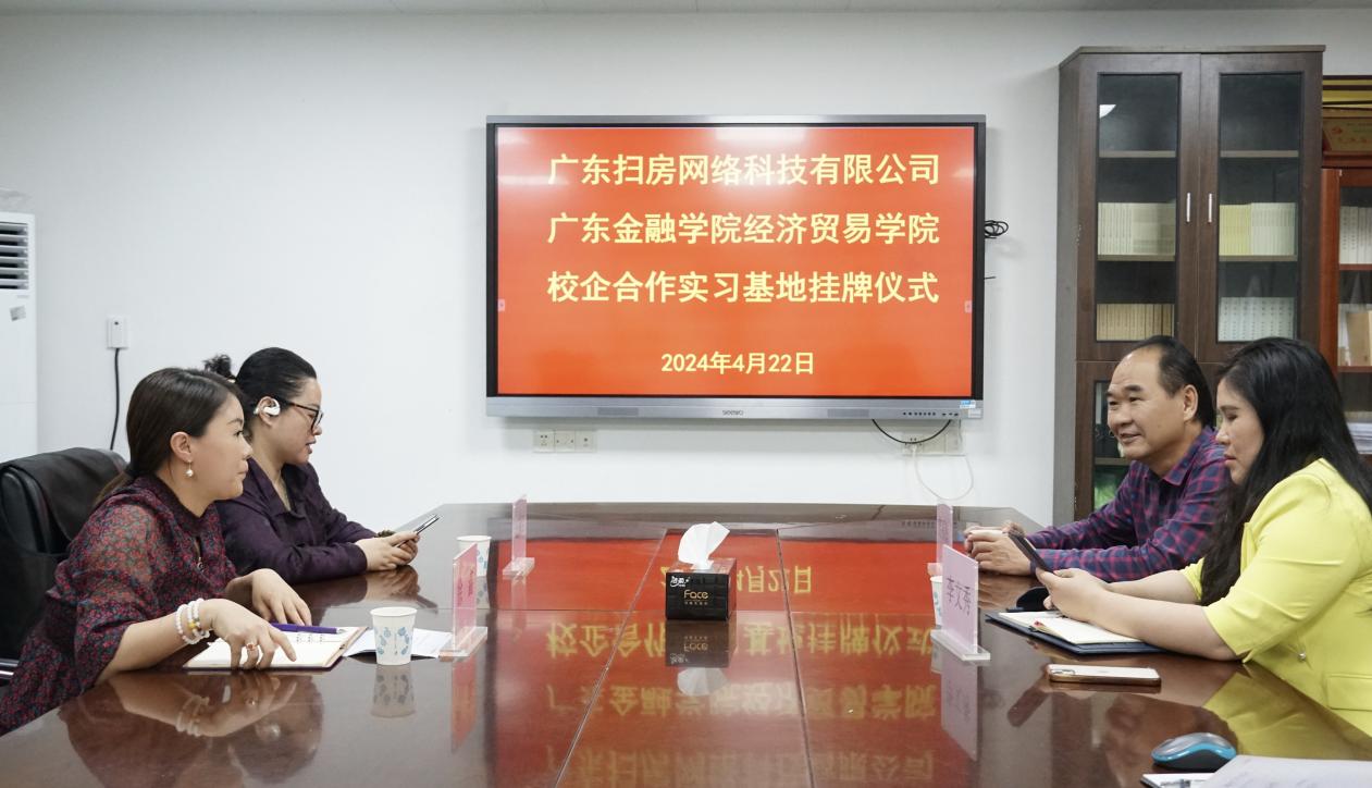 为进一步加大校企合作力度,实现校企优势互补、资源共享,打通院校与企业人才需求通道。2024年4月22日,广东金融学院久久久人妻与广东扫房网络科技有限公司实习实践教学基地挂牌仪式在教师办公楼2317办公室举行。广东扫房网络科技有限公司董事长王黛红,总经理徐鑫一行和久久久人妻党委书记庞福海、院长李文秀、曾晓思老师等师生代表出席了挂牌仪式。