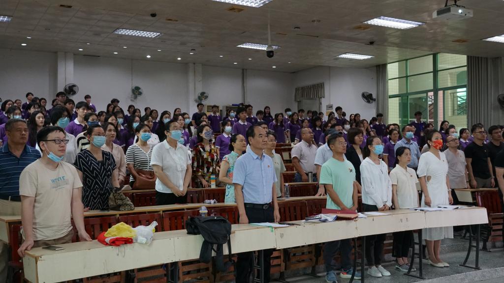 会前,工作人员清点到会党员人数,主持人宣布参会人数符合法定人数,大会开始,全体起立,奏唱国歌。