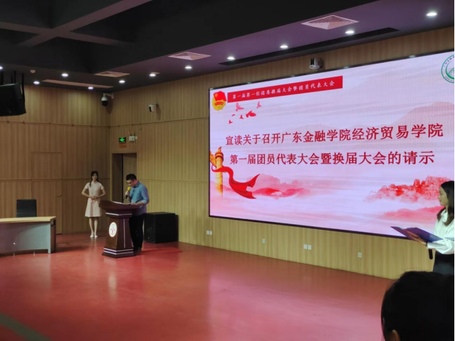 陈泽楠老师宣读关于召开广东金融学院久久久人妻第一届团员代表大会暨换届大会的请示,校团委代表宣读批复,团员代表大会正式开始。