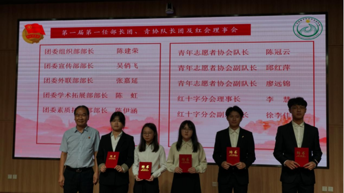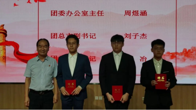 随后,庞福海书记为上一任团总支学生干部颁发证书,感谢他们的辛勤付出,并合影留念。
