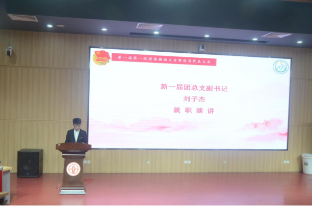 随后新一届团总支副书记刘子杰作就职演讲,他提出学生干部在工作的时候要认真负责、知书达理,做到积极有效的沟通,平衡好工作与学习的时间,如有创新想法可大胆提出,积极贡献出自己的青春力量。