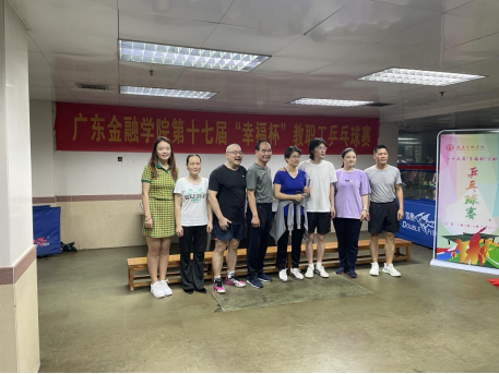 2023年4月17日、18日,广东金融学院教职工传统文体活动赛事——第十七届“幸福杯”教职工乒乓球比赛在学校乒乓球馆圆满举行。我院教职工们热烈响应,积极参与,我院教工代表队王理、刘沙、李先启、王婷、郭丽、梁涛、陈敏虹、曲昊月在领队庞福海的带领下参加比赛。