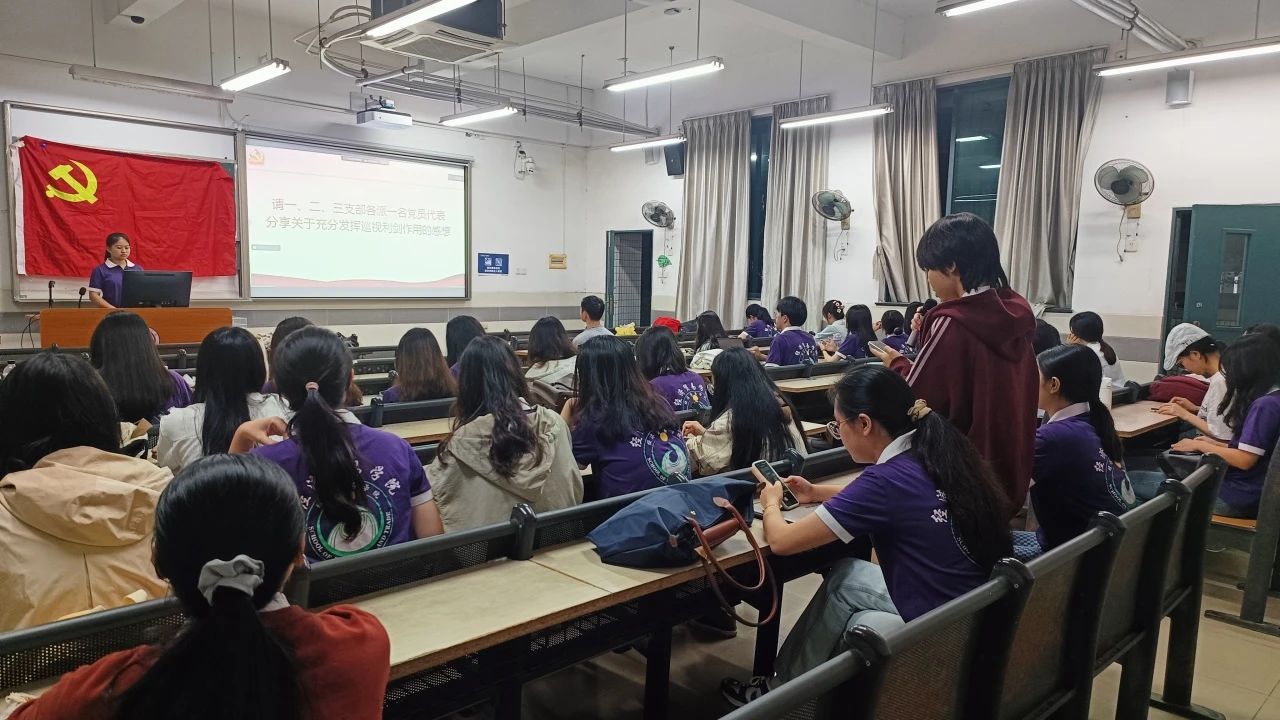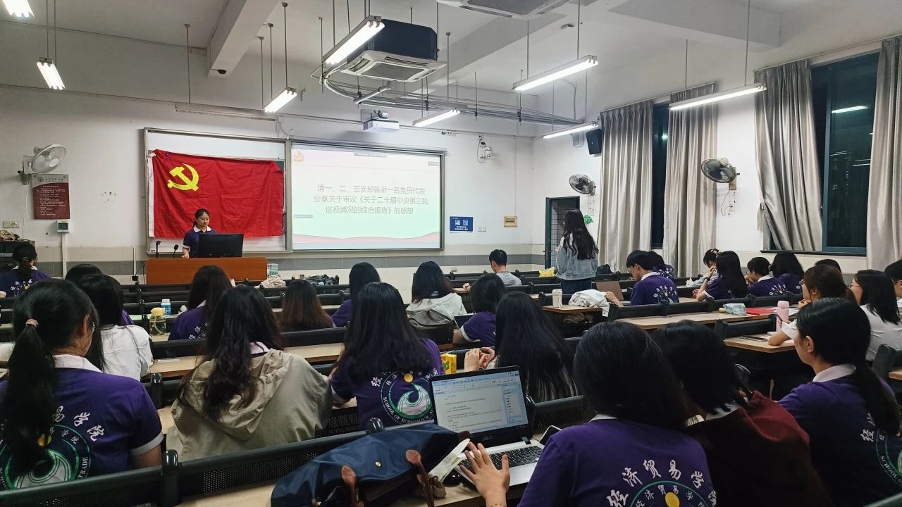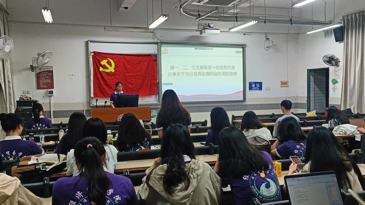 学生党员代表邱艺涵、邱雅轩及柯春茹就学习视频内容发言。他们认为巡视工作不仅是对党组织和党员领导干部的一次“政治体检”,更是对党的纪律和规矩的一次全面审视,彰显了党中央全面从严治党的坚定决心。在今后的学习工作中,会以更高标准要求自己,增强纪律意识,为推进各项事业高质量发展贡献力量,坚定维护党的良好形象与公信力。