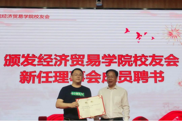校友工作办公室主任陈绍波致辞,充分肯定了经济贸学院的校友工作,祝贺本次经贸学院校友会换届大会圆满成功。陈主任还分享了在广东金融学院四十年的工作经历,抒发了他对母校深深的感情。他勉励校友们要谨记广金的培养,互相帮助,互相支持。在各个行业充分展示广金学子的风采,用优秀的成绩报答母校。