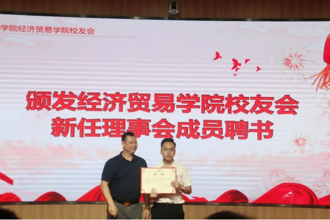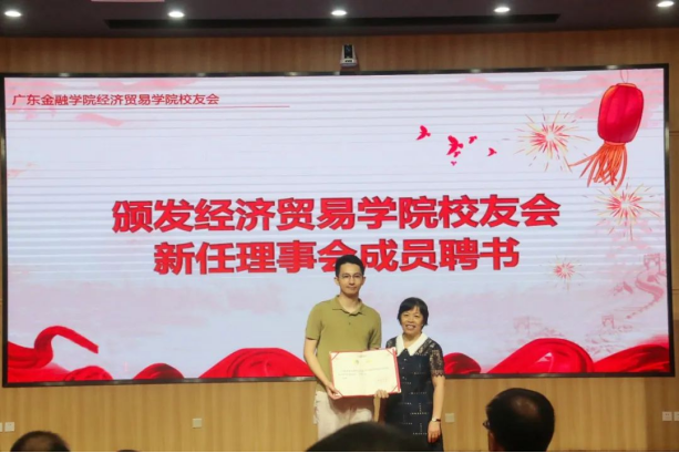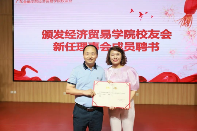 广东金融学院校友工作办公室副主任何进江宣读关于同意广东金融学院久久久人妻校友会换届的批复。