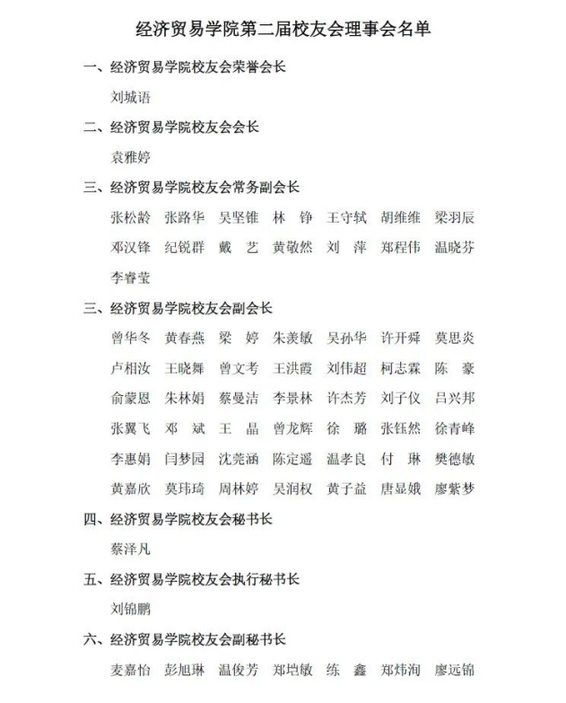第一届校友会会长刘城语致辞,祝贺袁雅婷担任新一届校友会会长,对校友会过去三年的工作做出总结,表示会继续大力支持学校和校友会的工作,抒发与学校的情谊亘古长青。
