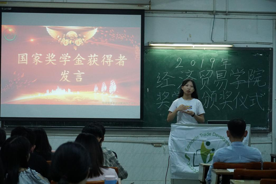 荣誉证书颁发后,陈琪君同学上台发表获奖感言,她为现场的同学分享了一直以来她为获得国家奖学金所做的准备,并给台下的同学推荐了不少学习资源,使同学们受益匪浅。紧接着,李丽琴同学用真挚的语言为同学们解开了学习中所遇到的困惑,并为他们提供了不少珍贵的建议,引发了同学们深深的思考。我们应如李丽琴同学所言那样:“春天万物都在获得新生,而我们也要加油了,而加油是要建立在行动上的!”,用行动诠释无悔的青春。最后是郑晓莉同学的发言,虽然她现在身在西财,不能来到现场与在座同学近距离交流,但她仍贴心的将她的个人体会写成文字和同学们分享,给同学们带来不少指引,言传身教,告诉我们“历尽千帆,归来少年”。