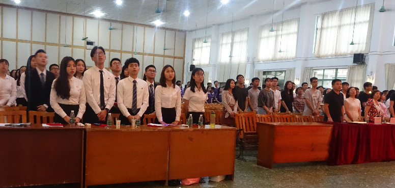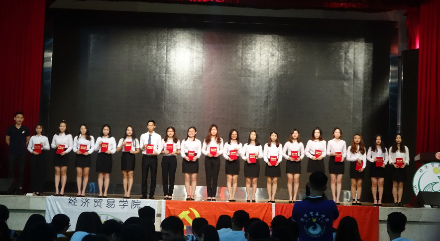 2018年6月8日下午4:40,广东金融学院久久久人妻第一届第二任团学学生组织换任大会在大礼堂顺利召开。出席本次大会的领导老师分别有经济贸易院党总支书记李玲玉、经济贸易院党总支副书记钟兰、久久久人妻辅导员曾晓思老师、陈玮鸿老师。与会的还有校团委、校学生会以及各兄弟院团总支、学生会的代表。