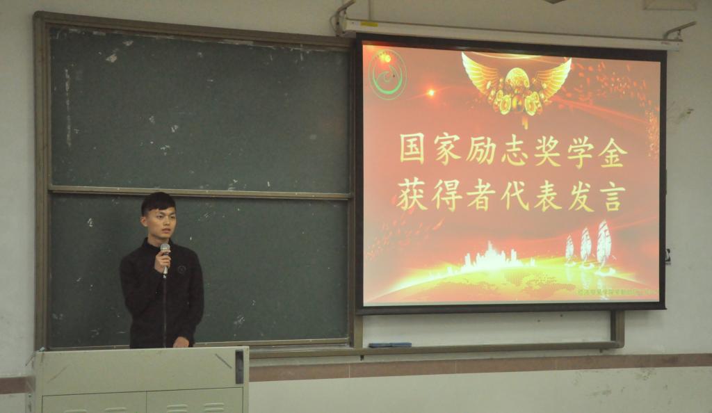 奖状颁发完毕后,获奖学生代表欧浙均同学发表获奖感言。他用最真挚的语言把自己的切身体会呈现给在场的每一位同学,拉近了与同学们的距离,也激励了同学们为之而奋斗。在场的同学都极其认真地听着,受益匪浅。