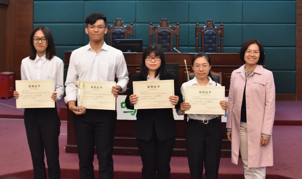 经济与金融一、二班代表队,获得亚军的是国贸二班代表队,获得季军的是国商一、二班代表队,获得优秀团队奖的是国贸四班代表队。获得最佳辩手的是李心悦、许赐增、郑纯阳、林欣欣、黄惠霞、冯苑仪等六位同学(排名不分先后)。领导为获奖选手们颁发奖项,并与选手合影留念。