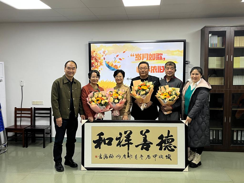 最后,学院领导为五位退休教师送上鲜花,并合影留念。