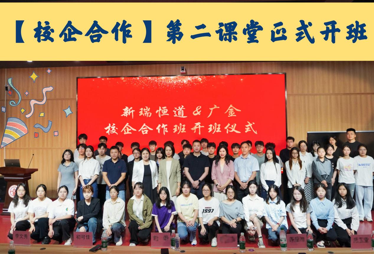 5月10日,新瑞恒道集团与广东金融学院校企合作班开班仪式在北阶103课室隆重举行。新瑞恒道集团副总裁刘琨、广东金融学院副校长初可佳、企业代表及师生代表共60多人出席了开班仪式。