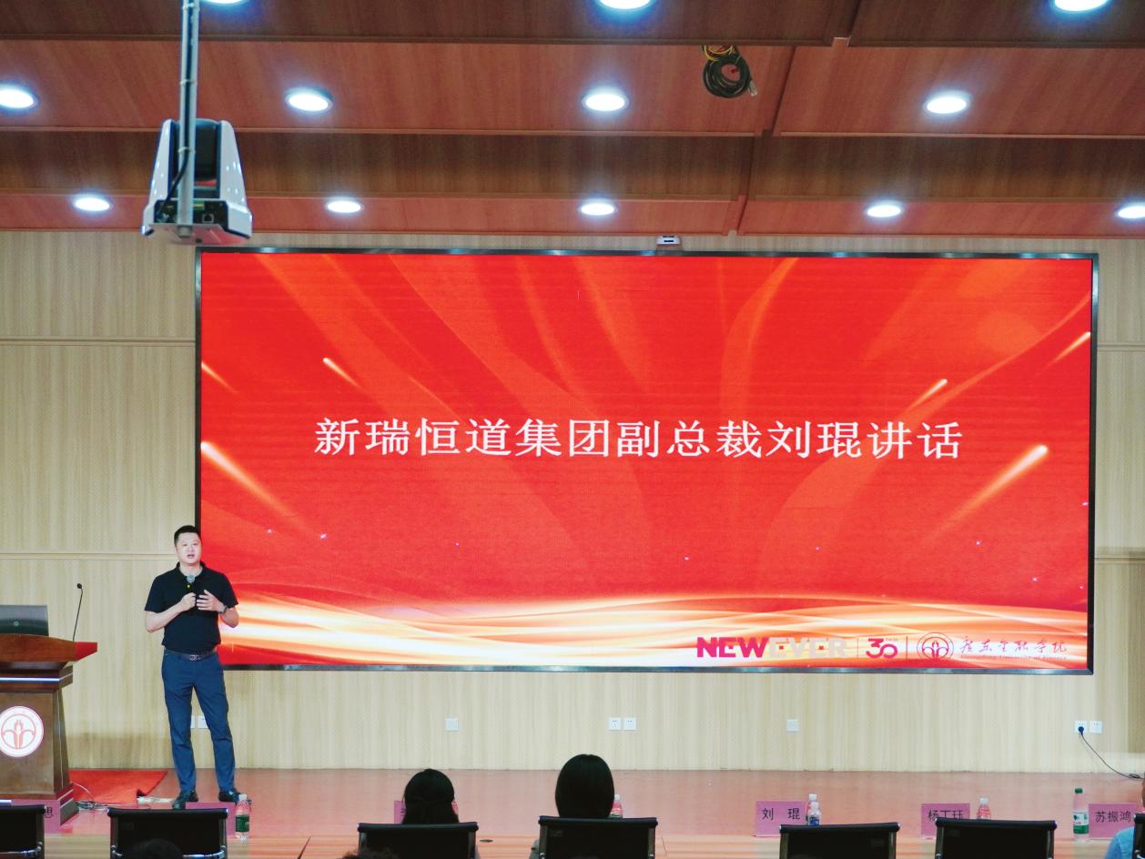 新瑞恒道集团人事行政部负责人杨丁珏就校企合作班的具体规划进行了详细解读。该项目采用"第二课堂" 与 "校企联合班" 双轨并行的创新培养模式,面向全校大三学生开放。其中,"第二课堂" 将于 2025 年启动,面向 2022 级学生,学员完成课程后可获得实践学分;而 "校企联合班" 则计划于 2026 年开展,针对 2023 级学生,课程成绩可计入正课学分体系。两种培养模式均实施定向培养与考核机制,学生通过企业甄选后,可直接进入企业实习。