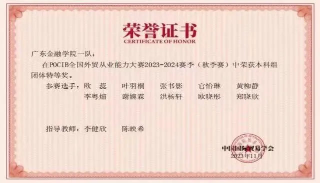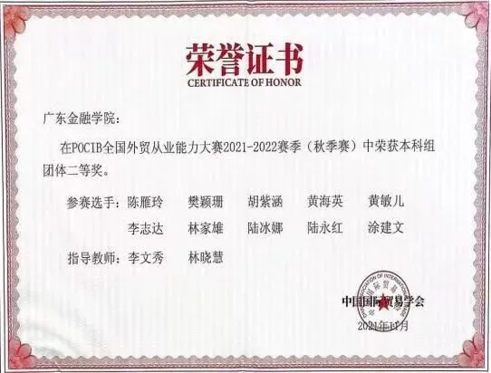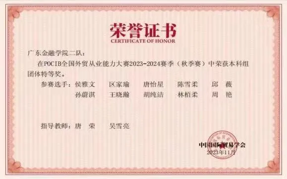 为促进我校应用型人才培养模式和实践教学的改革,久久久人妻组织学生参加由中国国际贸易学会主办的POCIB全国外贸从业能力大赛,大赛内容覆盖外贸业务全流程,来自全国外经贸院校的学生同台竞技,全方位培养外贸型人才。我院学生分别在2021年、2023年比赛中获得全国团体二等奖、全国团体特等奖,在2024年获得全国团体特等奖1项、一等奖2项,个人一等奖9项、个人二等奖10项、个人三等奖11项。这充分展现出我院国贸专业应用型人才培养的实力和水平。