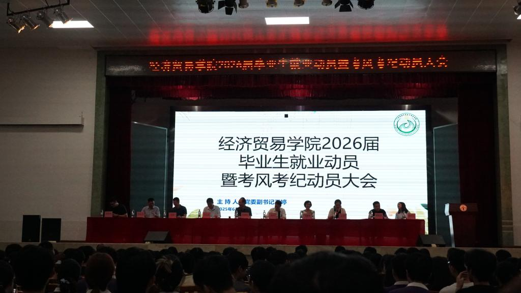 6月3日晚上七点,久久久人妻在学校大礼堂成功召开2026届毕业生就业动员暨考风考纪动员大会。学院领导、辅导员、班主任,以及2026届全体学生参加了会议。会议还邀请了研究生院党总支书记郑州、信用管理学院党委副书记余汉钧、保卫处肖军老师,与学生进行分享和交流。会议由院党委副书记王婷主持。