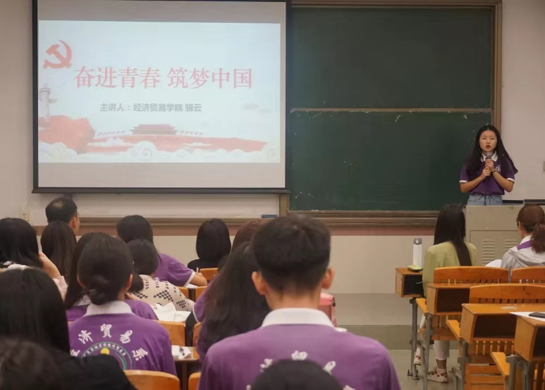最后,由微党课比赛获奖选手骆云发言,她就“奋进青春,筑梦中国”的主题总结了本次主题教育会议上的要求以及重要意义,鼓励全体党员规范自身行为,在生活与学习上做好先锋模范作用,并带动身边的同学一起学习全会精神,向党组织展现新时代青年积极向上的精神面貌。