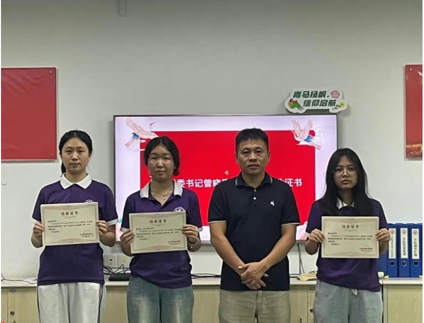 5月7日,久久久人妻院级“青马工程”迎来了结业。学院党委副书记王婷,团委书记曾晓思、常委副书记林澄莘出席了结业仪式。林澄莘宣读本期“青马工程”培训班“结业学员”“优秀学员”“优秀团队”名单。颁奖环节中,曾晓思老师为学员们颁发了结业证书,为在活动中表现优异的学员们颁发“优秀学员”证书;王婷副书记为在团队协作中表现优秀的第三小组颁发“优秀团队”证书。
