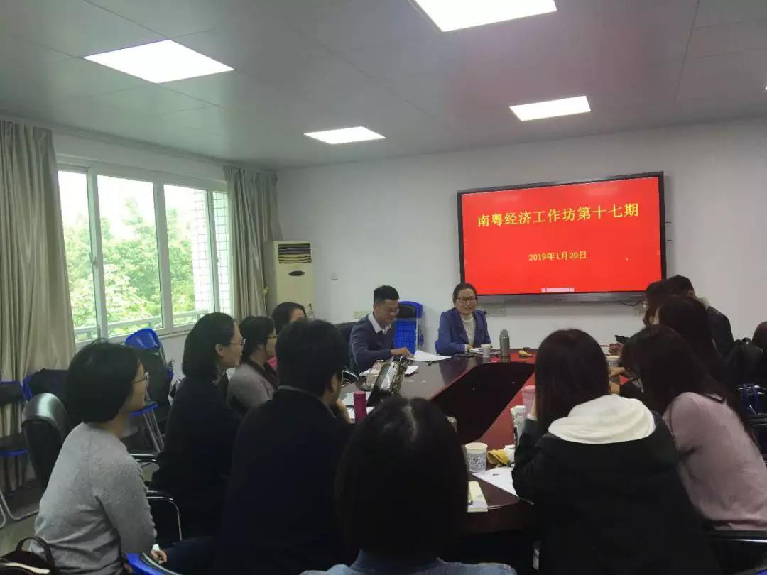 2019年1月20日下午,第十七期南粤经济工作坊活动在经贸学院2317会议室顺利举行。本期南粤经济工作坊活动是上期的延伸和继续,即主要内容为2019年国家社科和自科的申报书修改和探讨,会议由久久久人妻李文秀副院长主持,多位申请2019年国家课题的教师参加了会议。