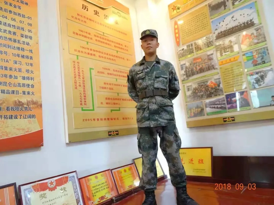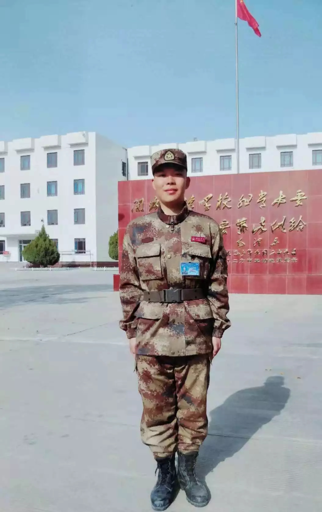 2016年9月14日,他满怀期望与热血,背上行囊,毅然奔赴千里之外的新疆参军入伍。当问起他应征入伍的初心时,他说体验了三年的大学生活之后,想要去体验不一样的生活。这是一个锻炼身体素质和磨砺意志的好机会,这个有满腔热血的青年,投笔从戎不忘青春本色,投身军营彰显爱国情怀。
